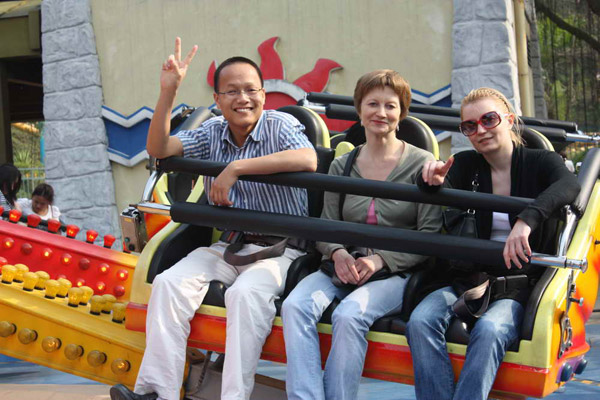 The first project we challenged was the Half Pipe skating roller coaster which is one of the most thrilling projects. Over 30 meters high giant skateboard, dropping sharply with the rapid rotation. It is enough to shrink us back at the first sight. But Focono is a Young team with passion. None of us want to be defeated without trying. We got on the skateboard with upset. Continuous Weightlessness during rapid up and down movements made us felt extremely uncomfortable. When the skateboard finally stopped, our faces filled with scaring and some of us even weaked at the knees. This brought us much pressure to finish the coming projects. Some of the colleagues planed to give up. But no one really give up any projects under colleagues encourages. All of us affected by the positive spirit from Focono team, we built our confidence and challenged all the projects. Fear and suffering is no more with us but the real enjoyment after we overcome the 2nd project and the 3rd project. We all enjoyed the extreme pleasure brought by the weightlessness. We shouted loudly and enjoyed laughter during up and down movements.