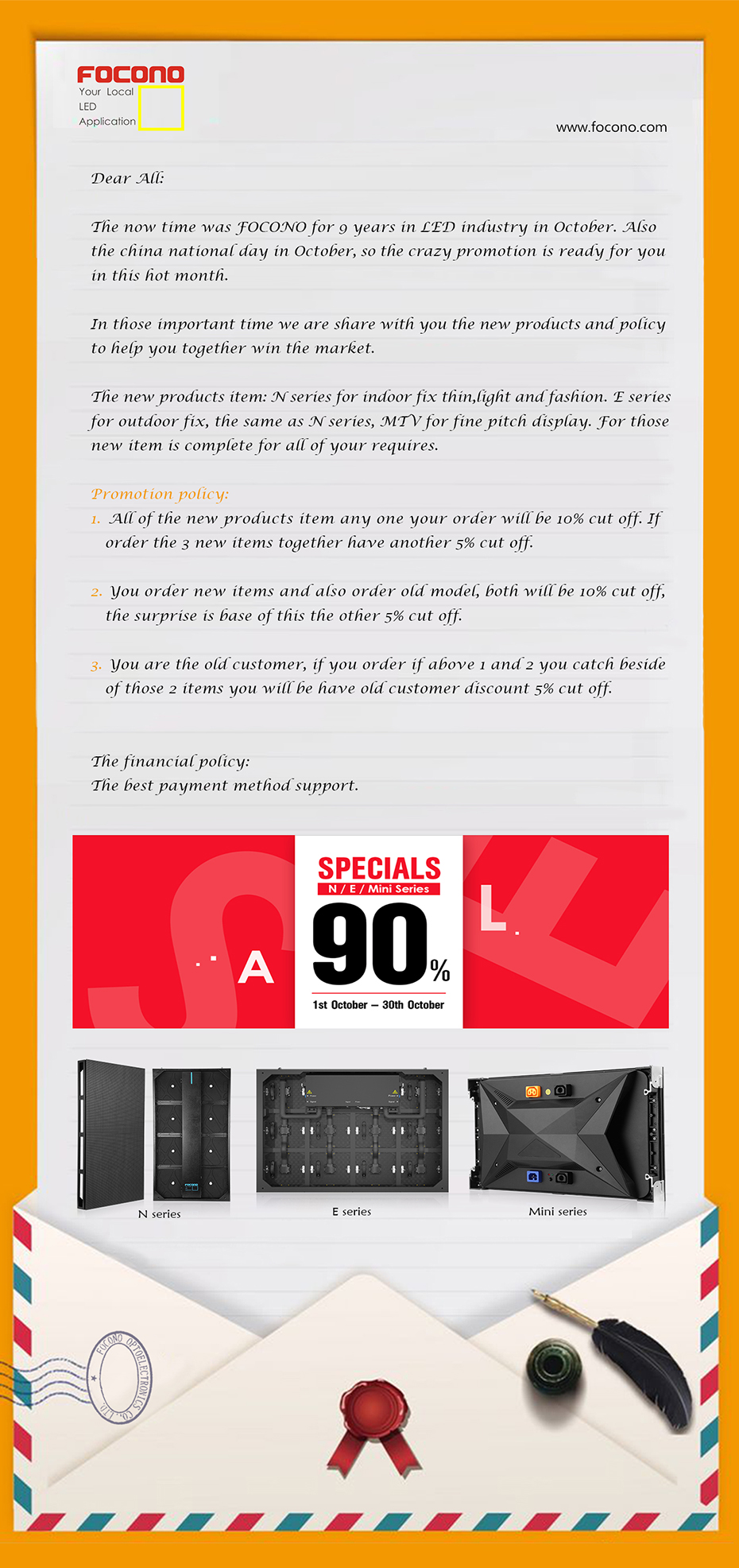 FOCONO New Products Sales Promotion Is Coming! Release Time:2017-09-30 PREVIOUS:Do You Know WhatsAPP Blocked In China? NEXT: LED Display Is Thin and Stylish, What Can't Possi...
