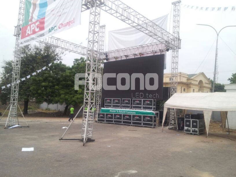 Together with our partner Zmirage (www.zmirage.com ), the biggest event and rental company in Lagos, FOCONO outdoor P10 33sqm rental screen show up on APC event in Alake playing ground in Abeokuta, Nigeria on August 19th, 2013.
