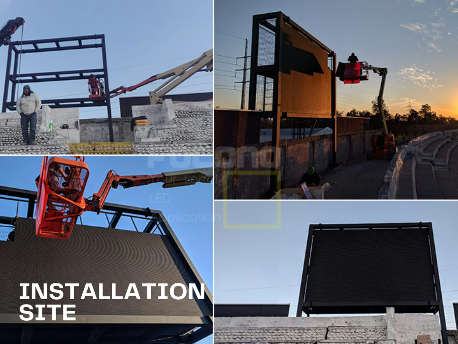 4. Install the LED screen: Install the LED screen on the structure. Make sure the screen is flat and there is no obvious bend or twist.
